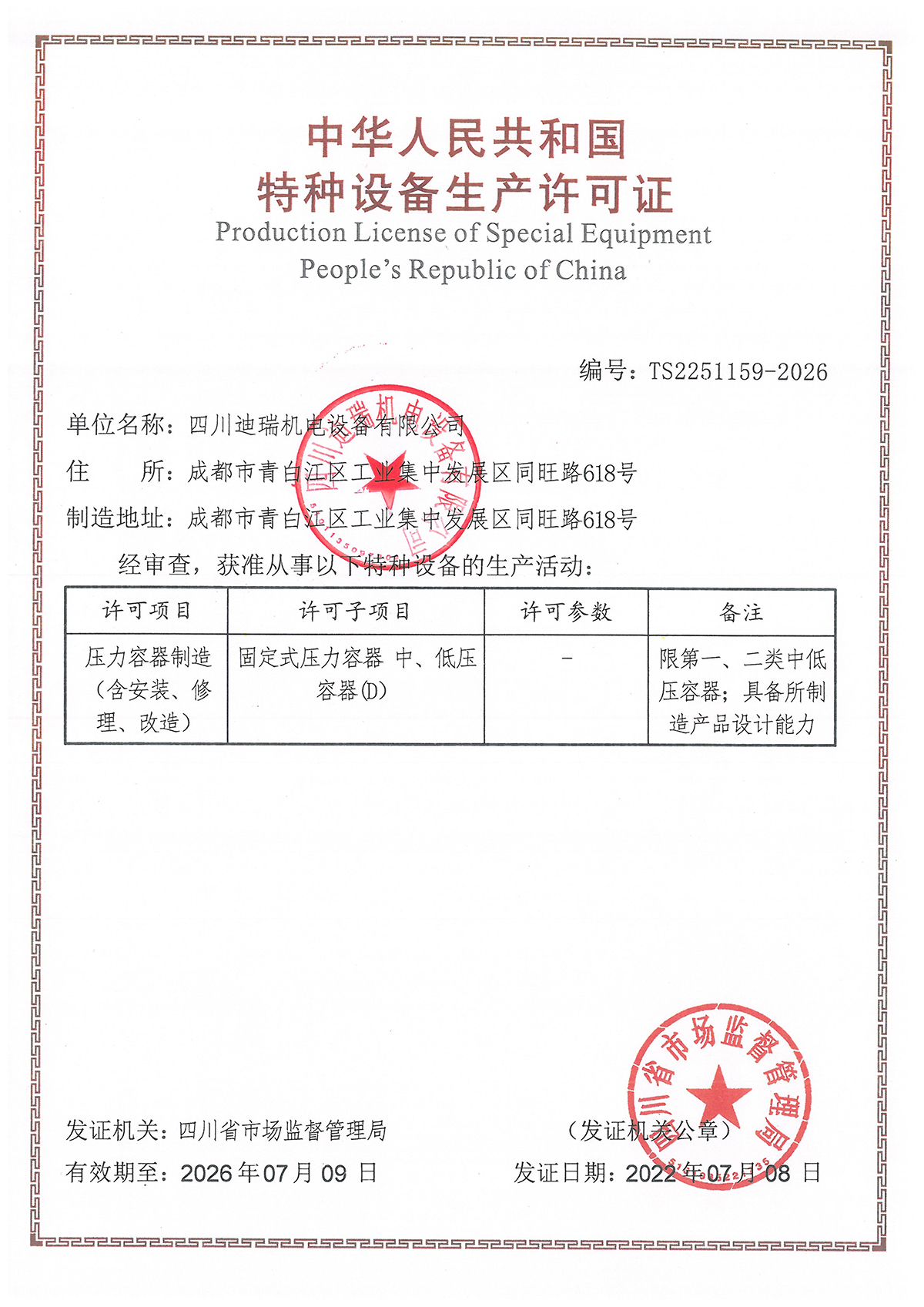 企業奉行“用戶至上、優質服務、持續改進”的宗旨,不斷改進產品結構,提升產品性能,并與西安交通大學能源與動力工程學院建立產學研合作,取得8項實用新型專利,正在申報一項發明專利。企業通過D1、D2類壓力容器制造許可認證和ISO9001質量管理體系認證,被評為成都市擬上規企業、成都市專特新精企業和大中華區酒店工程師協會最佳合作單位。